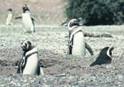 by Peko バルデス半島は大西洋に突き出した打出の小槌の形をした小さな半島で、半島全体が国立公園になっています。半島へは公共の交通機関は無く、現地のバスツアーかタクシーを利用します。アルゼンチンは「旅行者割増」があって、外国人はツアー料金だけでなく交通費もとにかく高いので、貧乏旅行者にはつらいです。本当は自転車でテントを持って行きたいところですが、国立公園故キャンプは禁止、しかも沙漠の中で水もないときては仕方ありません。私達は現地で知り合った日本人青年と一緒にタクシーで向かいました。 半島内は乾燥した沙漠です。スカンクやアルマジロ、グアナコやニヤンドゥ(ダーウィンレア)などが生息しており、8月から11月頃には幅約30kmの湾内に160頭余りのセミクジラが集まることでも有名ですが、すでにクジラは去り今はとても静かです。海辺にはオタリアがハレムを作っていて、生まれたばかりの子がたくさんいました。大きなオスが動くたびに踏み潰されないかと、こちらは勝手にハラハラ…。 また、東端のプンタ・ノルテにはミナミゾウアザラシが休む浜があり、見どころの一つとなっています。ミナミゾウアザラシは断崖下に広がるジャリ浜にてんでに寝ころんでいました。浜は立ち入り禁止ですが、観光客は断崖を降りて砂浜のはしっこに立つことができるので、ゾウアザラシと同じ目線になることができます。浜には柵があるわけではないので実に無防備に見えますが、その自由さがとてもいい感じです。ミナミゾウアザラシの巨体は圧巻ですが、いくつも並んだ幸せそうな寝顔を眺めていると、とてもやさしい気持になれます。時々物憂げにヒレで砂利をすくっては背中に放り上げるのですが、それは、虻よけと暑さよけのため、とタクシーのドライバー氏が教えてくれました。いまは、雄が「南極近海からの長旅を終えくつろいでいるところ」とのことで皆皮膚がボロボロになっていました。ドライバー氏がとれた皮膚の一かけらを拾って見せてくれました。 明日は175kmほど南のプンタ・トンボへ行きます。マゼランペンギンの大ルッカリーがあるのですが、バルデス半島同様旅行会社のツアーで行くかタクシーをチャーターするしか手のないところです。思っていたより自由がきかずとてももどかしい思いをしています。 では、またお便りします。 プエルト・マドリンにて 1990.2.1 |